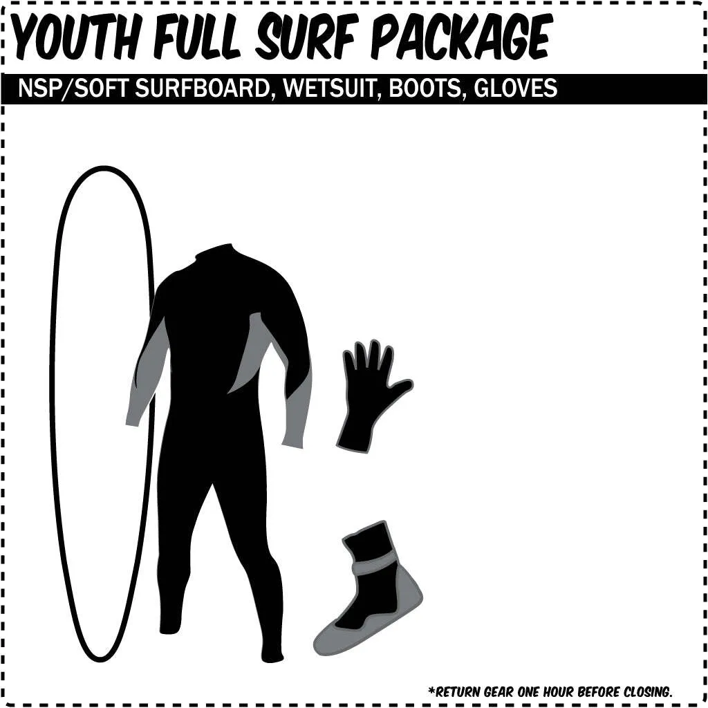 Youth Full Surf Rental Package - Complete Surfboard & Wetsuit Kit